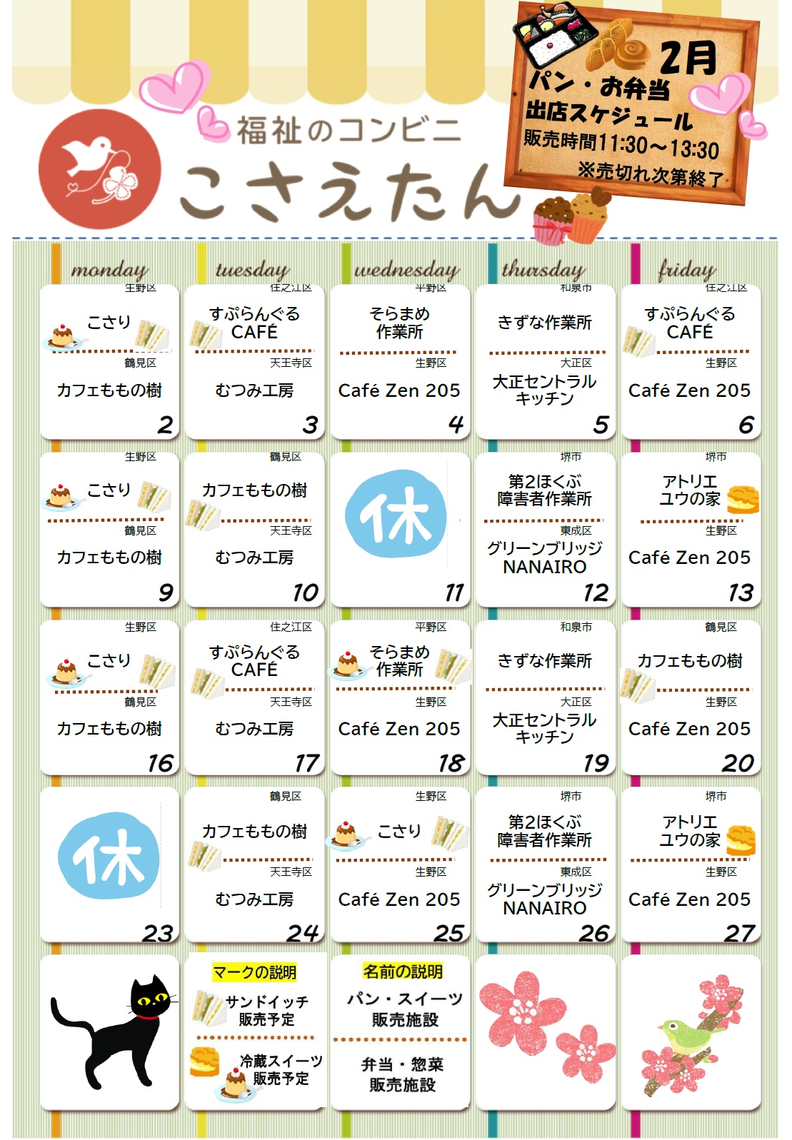 福祉のコンビニこさえたん2月の出店スケジュール